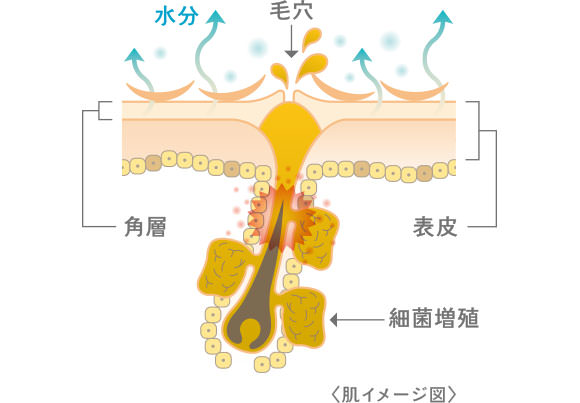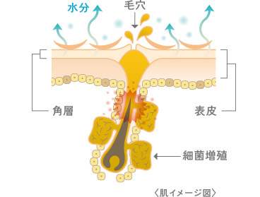 この時期の肌は、バリア機能が低下して外からの刺激を受けるため、安定した肌に比べて角層の水分量、油分のバランスが乱れた状態に。