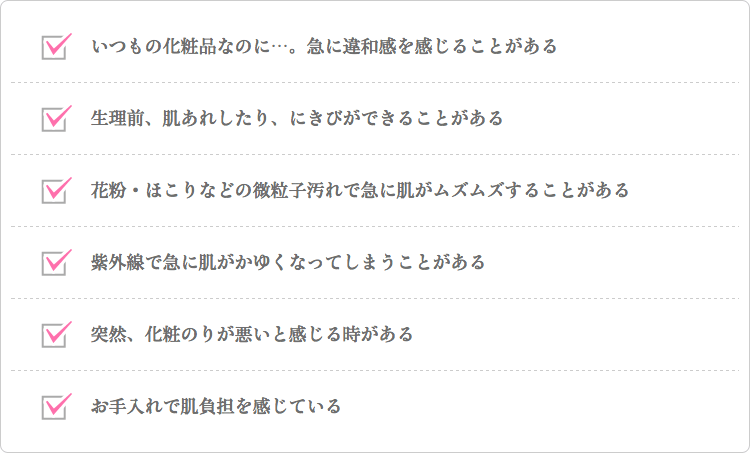 こんな症状、経験ありませんか?下記の項目に1つでも当てはまったら「敏感肌」かも。