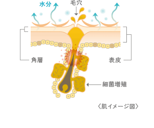 「敏感肌」とは、バリア機能が低下し、外からの刺激を受け、安定した肌に比べて角層の水分量、油分のバランスが乱れている状態です。