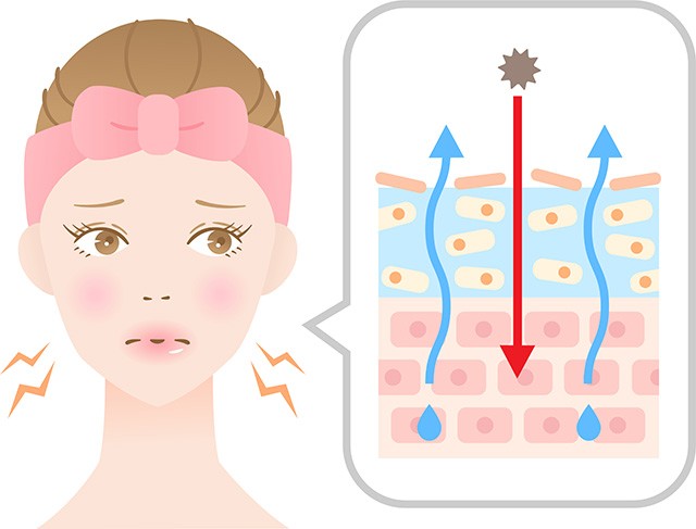 敏感肌によるバリア機能低下で起きる、肌荒れ
