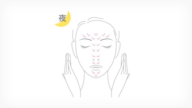 顔の中心から外側に向かって、両手の人差し指、中指、薬指でゆっくりと軽くたたきます。パッティングすることで浸透力もアップ!