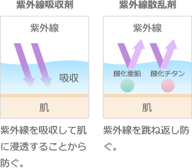 紫外線防止剤には紫外線吸収剤と紫外線散乱剤の、2種類があります。紫外線吸収剤は、体質によって、まれにアレルギーを引き起こすことがあります。なので、敏感肌の人は紫外線散乱剤のみを使用した日やけ止めがおすすめです。