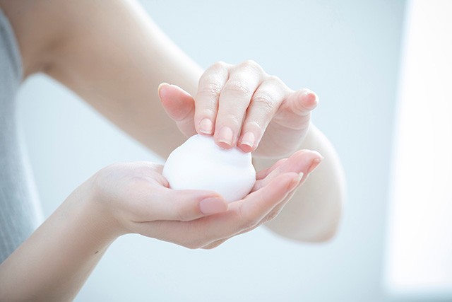 肌質やメイクの程度に応じて適切なクレンジングと洗顔料を選び、メイク汚れと過剰な皮脂をきちんと落とすことが大事です。とくに敏感肌の方は洗顔後のケアにも気を配ってほしいところ。顔を拭く際に、タオルでゴシゴシ拭くと肌に刺激を与えて肌荒れの原因になりやすいので、優しく押さえるように水分を拭き取りましょう。