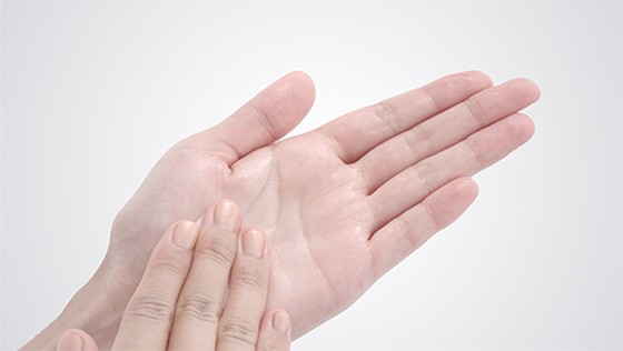 清潔な手のひらにスキンケア製品を適量とったら、両手のひら全体指先まで広げてから顔全体に広げます。その際、肌はこすらずスタンプを押すようになじませるのがポイント。また、1回の使用量が多めな化粧水は2回にわけてつけることで、より肌にうるおいが感じられます。