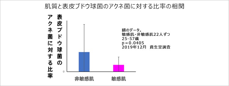 資生堂の研究では、この「表皮ブドウ球菌=美肌菌」の量が、健康な肌の人よりも敏感肌の人のほうが少ないことが分かったのです。