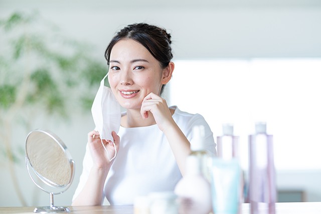 また、マスクの着脱を繰り返すことによって摩擦が生じ、それが肌への刺激となって角層がはがれやすくなり、バリア機能が低下してしまうこともマスクによる肌荒れ原因のひとつです。