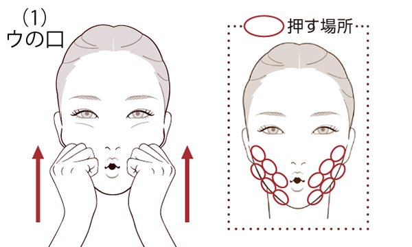 あご先~耳の下、口角~耳の横まで、3カ所ずつ、肌を押してから上に持ち上げ3秒キープします。