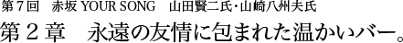 青山学院初等部、中等部、高等部、そして大学が一緒だった山田と山崎が共同経営でバー「ユアソング」をオープンするとき、親しい人たちが忠告したそうである。「共同経営なんてことをすると、たとえ儲かったとしても損をしたとしても、たいがいケンカ別れをするもんだ。やめたほうがいい。折角の長い友情に傷かつくぞ」
