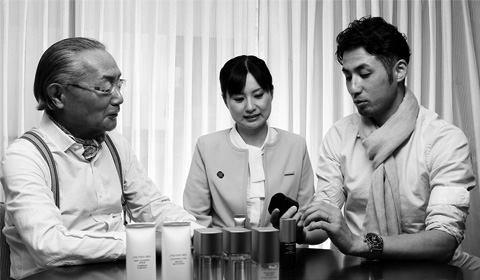 トシキ なるほど。シマジさんがいい例ですよね。このピカピカ輝いているのは何なんだと、はじめてシマジさんにお目にかかったとき思いました。親しくなって訊いたんです。「シマジさん、化粧品は何を使っているんですか」すると、わざわざウオッシュ・ルームから大量のSHISEIDO MENを持ってきて自慢げに「これが秘密兵器だ」と言われたんです。わたしもそのころから少しずつSHISEIDO MENを使っていたんですが、一気に気持ちが傾きまして現在に至ります。