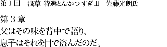 息子は父親の背中を見ながら育つ、とはよく言ったものである。「特選とんかつ すぎ田」の2代目、佐藤光朗はまさに父親の背中を見ながらとんかつの揚げ方を学んだと言う。昔堅気の職人は弟子の手を取って教えるようなことはなかったようだ。「黙っておれの技を盗め」であった。それでも父と息子の情愛は繋がってくる。この店の2代目もそうして父親の技術を学んだと断言している。