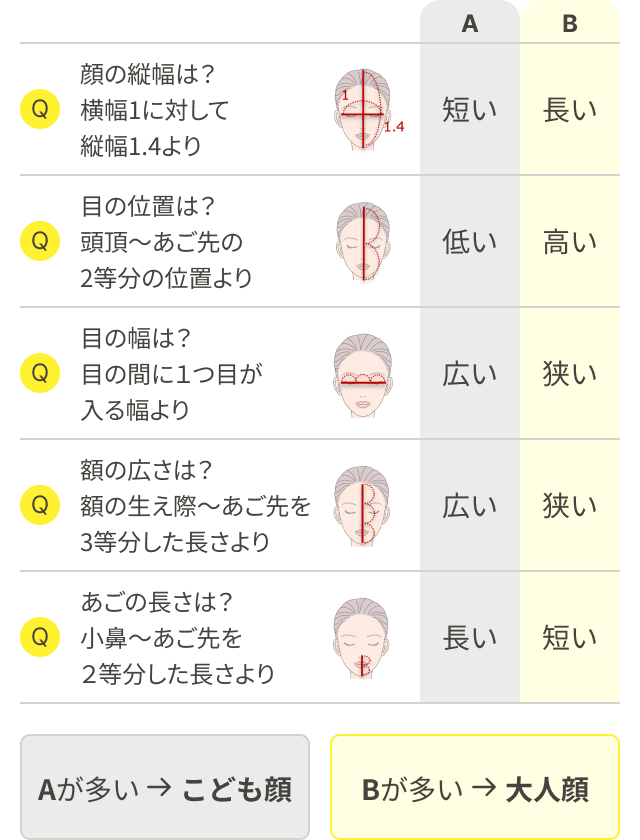 | 顔の縦幅(横幅1に対して縦幅1.4より) | 短い | 長い |