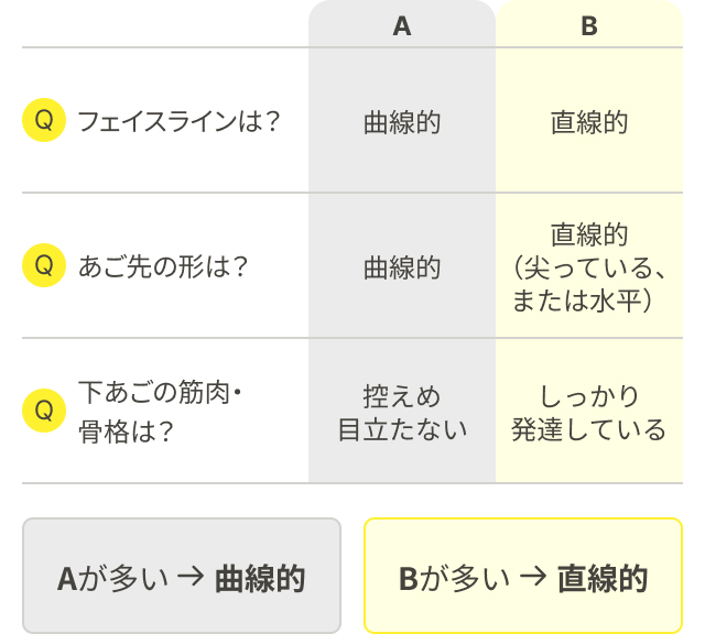 | フェイスラインは? | 曲線的 | 直線的 |