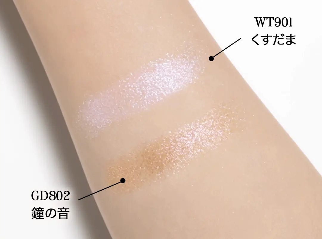 光の角度で色が変わるジュエルグリッターと、ぷにぷに感触の高密着つやパウダーで、一粒一粒がキラリと光輝く目もとに。