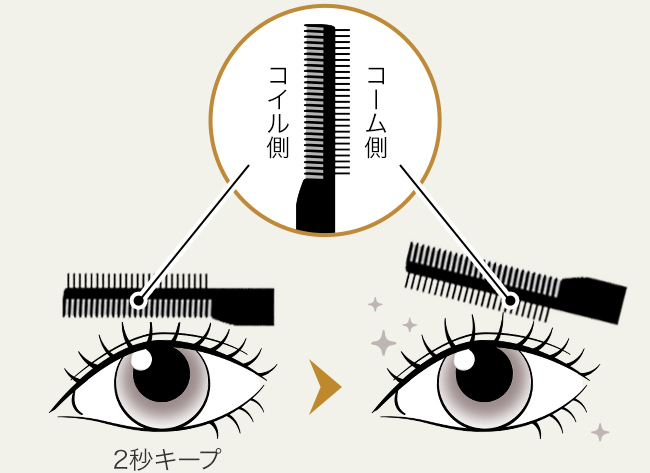 - コイル側でまつげの根もとを持ち上げ、2秒キープします。