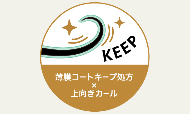 薄膜コートキープ処方で、美ロング&上向きカールを1日中キープします。