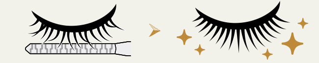 コームをまつげの根もとにあて、そのまま毛先に向かってゆっくりとかしあげます。