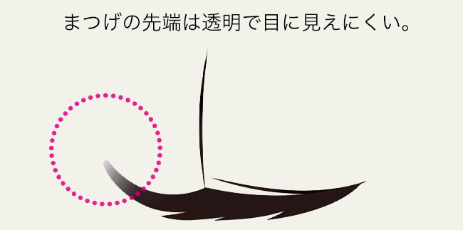 まつげの先端の透明部分を3日間(朝晩使用)で染めることで、まつげを長く見せることができます。