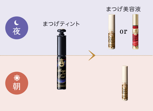 ※ラッシュジェリードロップ EX プレミアムをお使いの場合、まつげ美容液は夜のみ使用をおすすめします。