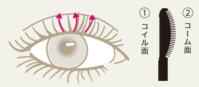 - 2.コーム面をまつげの根もとから毛先に向かってすーっととかしあげます。