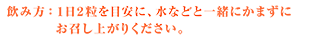 飲み方:1日2粒を目安に、水などと一緒にかまずにお召し上がりください。