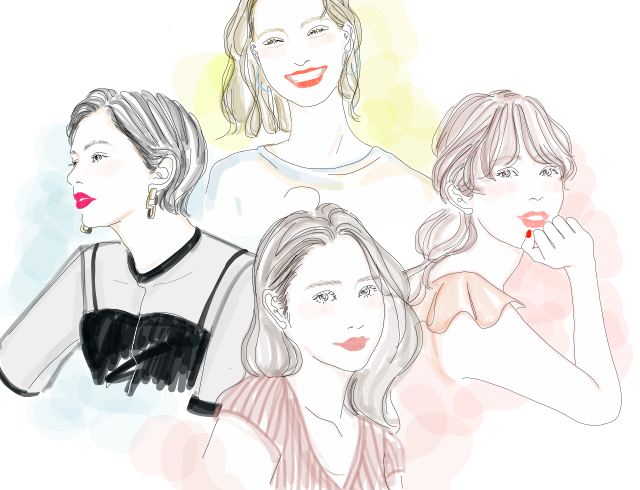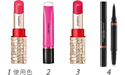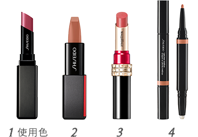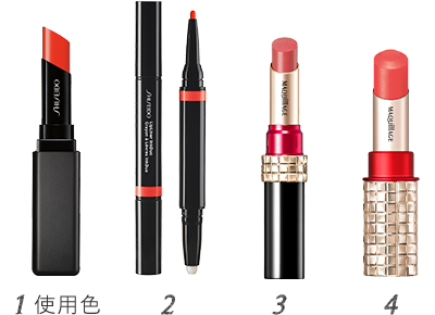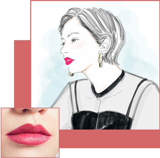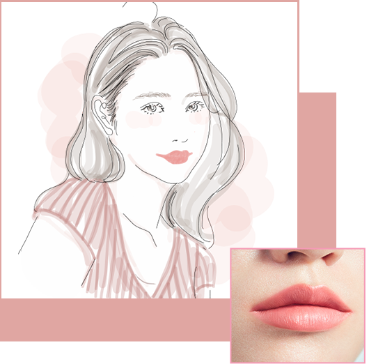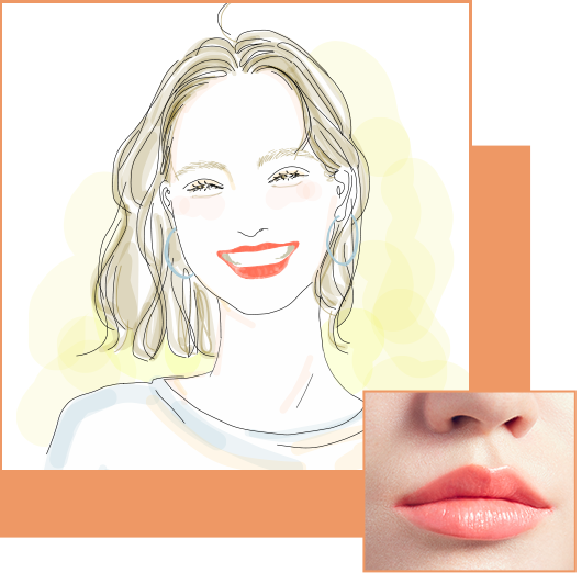 この春は、リップの質感に大きな変化が! ぴたっとつくマットな発色ではなく、透け感のあるソフトマットや、ツヤ感パールなど、ほんのり唇の色が透けて見える、シアーなタイプがトレンドです。ポイントは軽さなので、リップブラシで塗ったような、厚みのある塗り方はNG。じか塗りで輪郭をとり、中央から広げるようなイメージでのせると、今っぽい仕上がりになります。