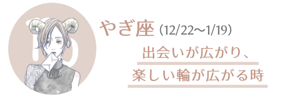 恋や友情にブーストがかかる時期。お誘いをもらったり、こちらもまたお誘いをしたりとあちこちを飛び回るようにして楽しいつながりの輪を作っていけます。飲み会や懇親会には、忙しくとも顔だけは出すようにすると気が合う仲間が増えるでしょう。そうやって自分の居場所を積極的に作ることで、運気全体に安定感が生まれます。なお、今の住まいに問題を感じている場合、引っ越しを本格的に検討し始めることになるかもしれません。実家住まいの方であれば、一人暮らしをスタートさせるのもいい選択となるはずです。