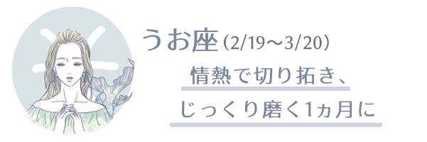 日を追うごとに、どんどん勢いが出てきます。月の上旬はじっくりと検討することに時間を使う人が多いだろうと思いますが、中旬以降はフットワーク軽く動けば動くほどにチャンスが巡ってきやすくなります。特に仕事では、「足で稼ぐ」「手を動かす」など、やや時代に逆行するようなやり方もバランスよく取り入れてこそ、いい結果を出せるでしょう。なお、月末からは「恋愛改革」の時期がスタート。あなたが自分らしく幸せになるために不要なものは、どんどん切り離されていきます。