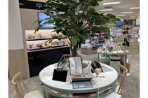 コスメガーデンLOOK。化粧品を自由にチョイスして相談できるお店です。 ガーデンをイメージした木と小道の中を散歩しているような癒しの空間です。