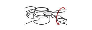 ●外容器の後ろの▲印の上にあるくぼみにコインなどを入れ、やさしくひねるようにして内容器をはずしてください。