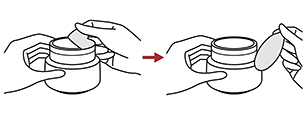 ●レフィル容器を外容器に入れ、上からしっかりと押し込んでください。