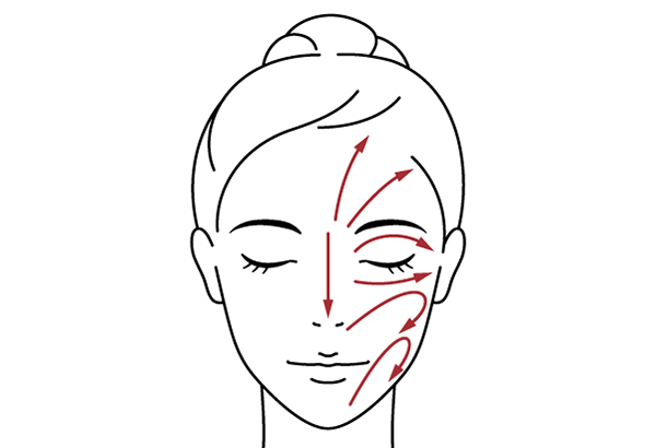 ●ブラシキャップを外しブラシカバーを下げ、顔の中心から外側に向かってゆっくり塗り広げます。