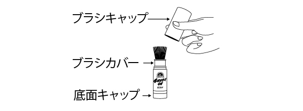 ブラシ取り外し後は、容器中のパウダーのこぼれを防ぐためブラシカバーを引き上げ容器キャップを閉めて、倒れないようにしてください。