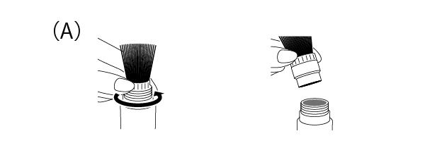 ※ブラシを外す際に、粉がこぼれることがあります。必ず容器の下に紙等を敷き平らな所でゆっくりとブラシを外して下さい。