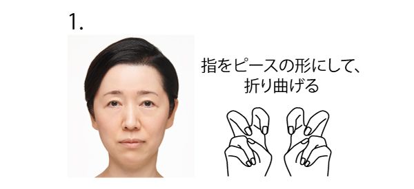 1.なじませた後、指をピースの形にしてから、折り曲げます。