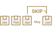 お客さまのご都合に合わせて、商品のお届けをスキップ(一時お休み)できる制度をご用意しています。