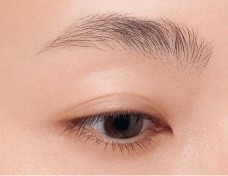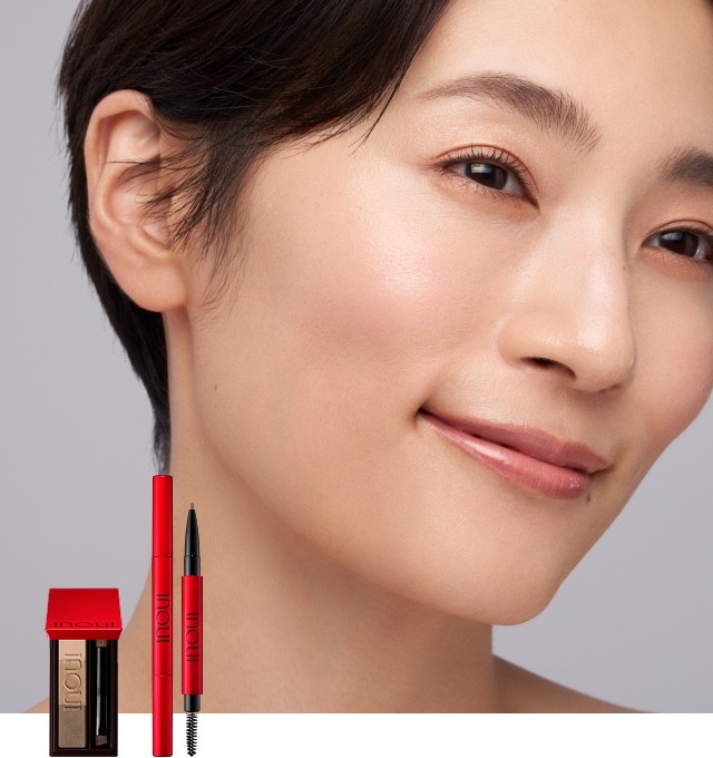 直線的にまっすぐブラシを動かす。エレガントに見せたいときは眉尻を長めに描く。 - ソフトタッチで筆が当たるところ当たらないところの変化を出すと、ナチュラルに。