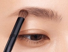 AまたはBをブラシにとり、眉の中央から眉尻、眉頭に向かってぼかすことで立体感を出す。