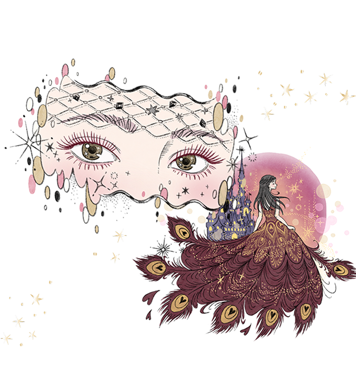 孔雀の王女は、美しい漆黒の羽を持っています。