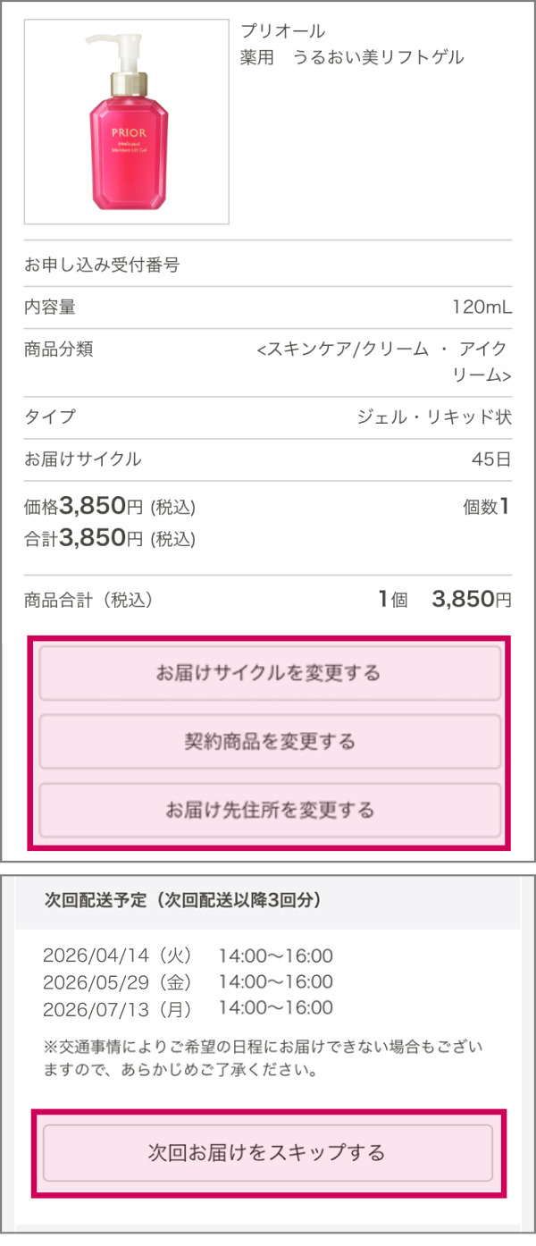 - ※ サイクル変更は次々回お届け分から適用されます。