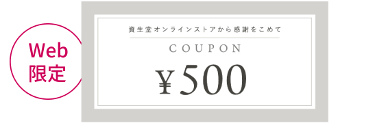 本キャンペーンのクーポンは資生堂オンラインストアで合計3,300円(税込)以上のお買い物時にご利用いただける500円クーポンです。店頭でのご利用はできません。