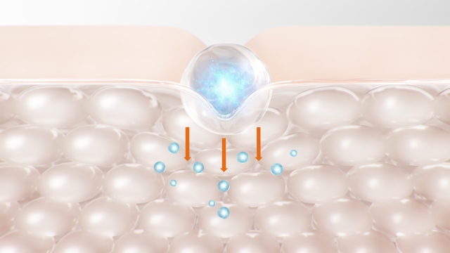 ピーンとしたハリ感触のゲルに満たされる