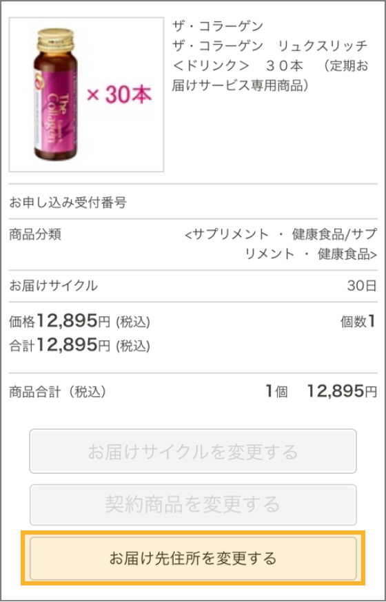 お届け先の住所をご変更される場合に