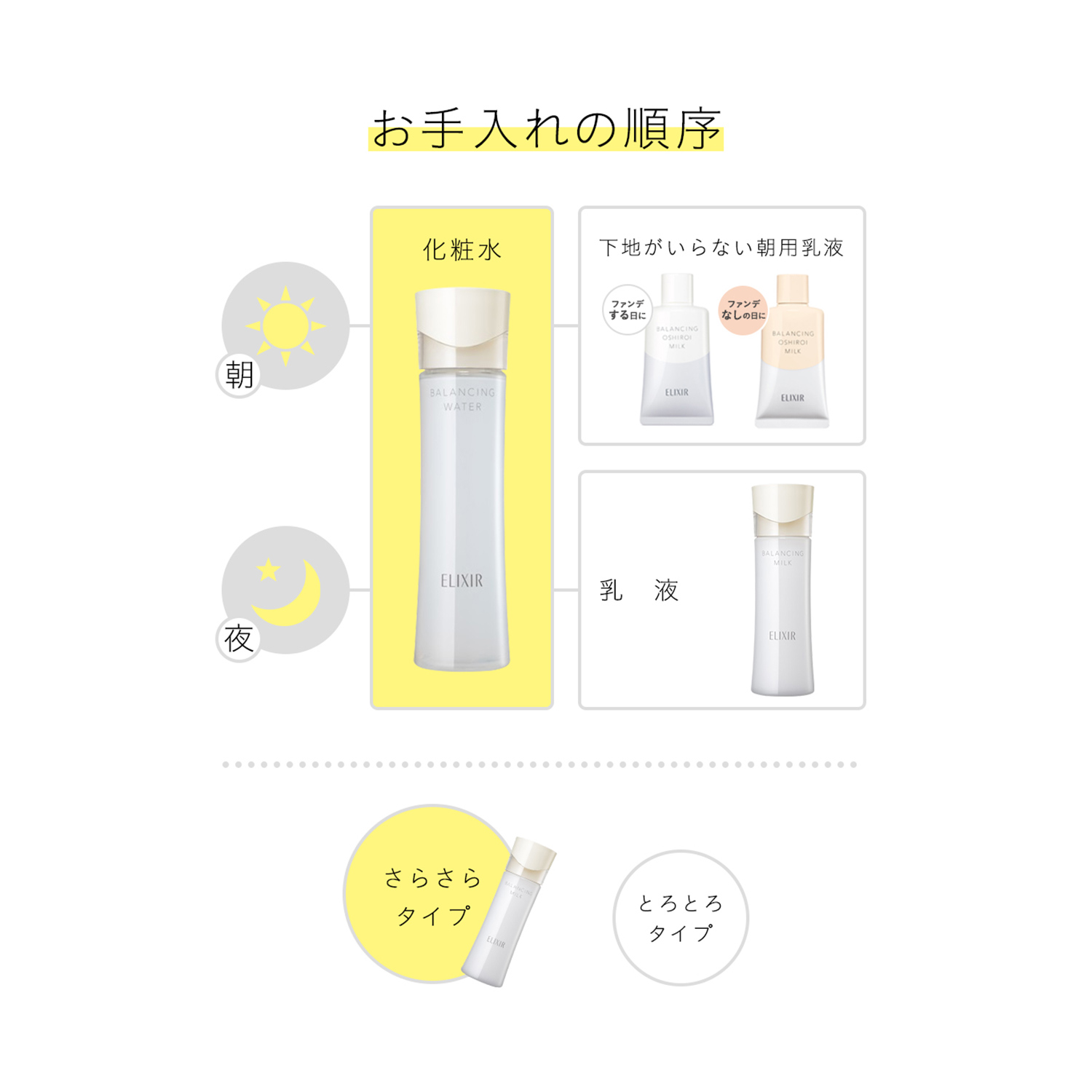 ◇バランシング ウォーター Ⅰ(つめかえ用)は、エリクシール ルフレ バランシング ウォーター Ⅰの本体容器に詰め替えてください。