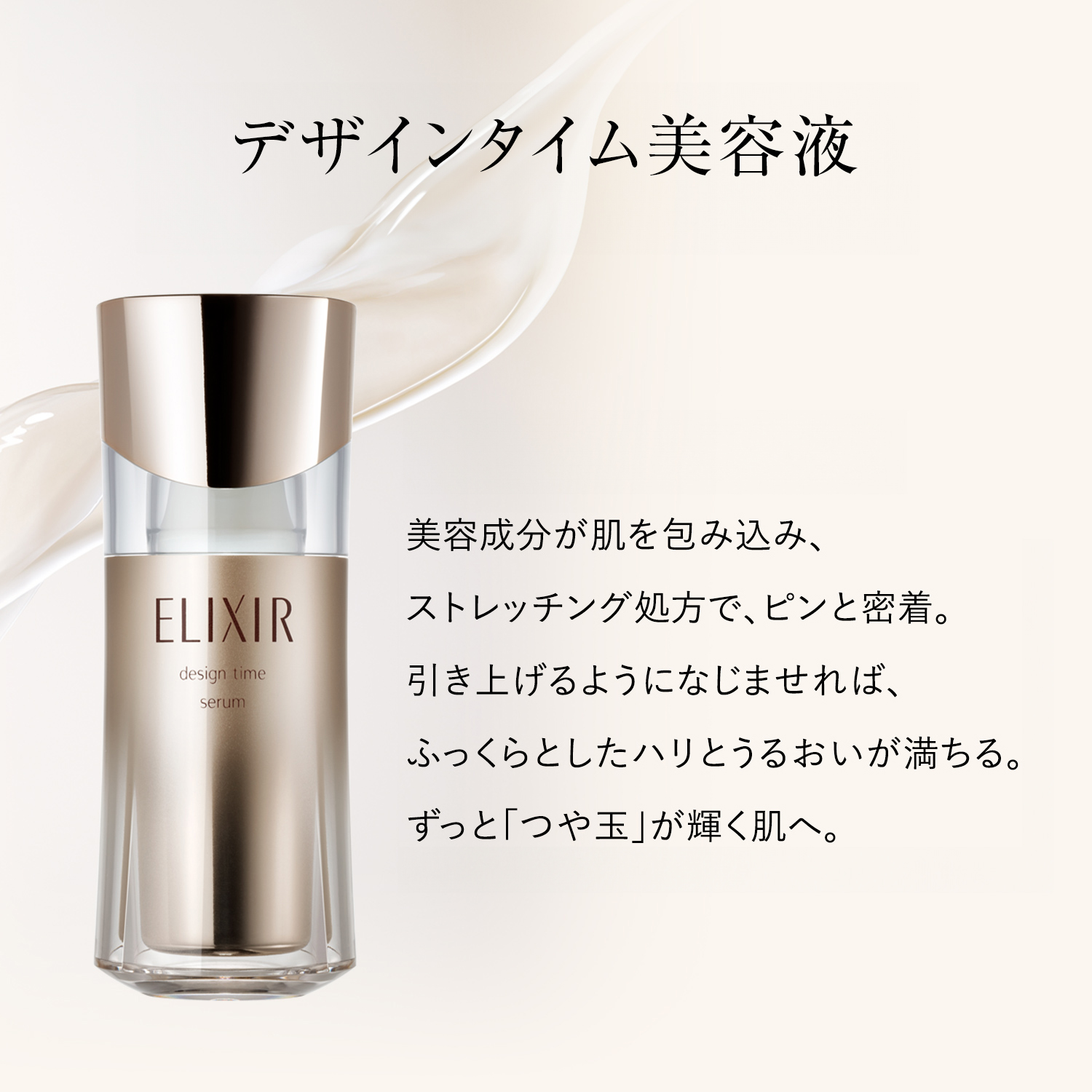 美容成分が肌を包み込みストレッチング処方で、ピンと密着。デザインタイム美容液