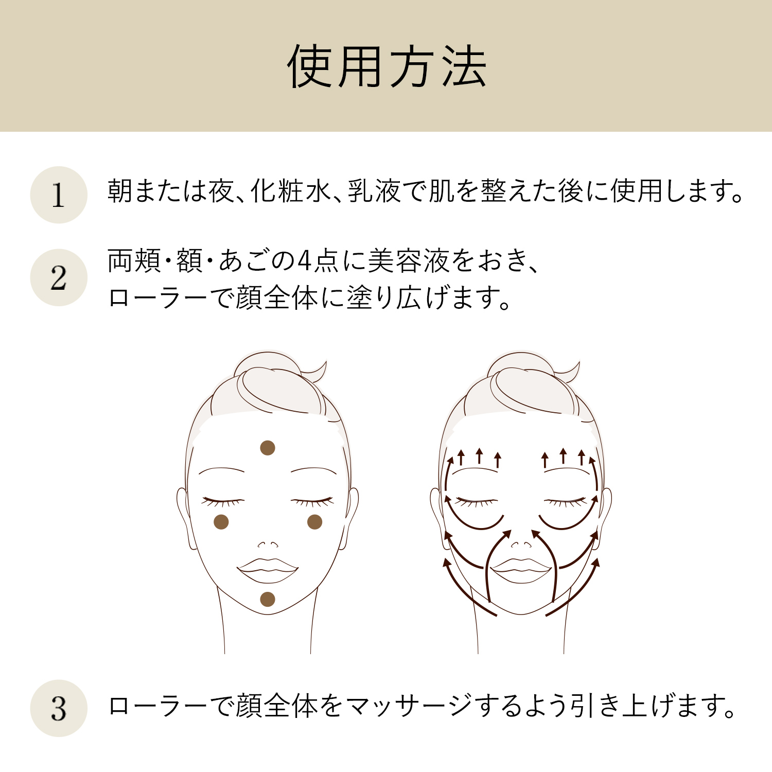 厳選美容成分配合のマッサージローラー付き美容液