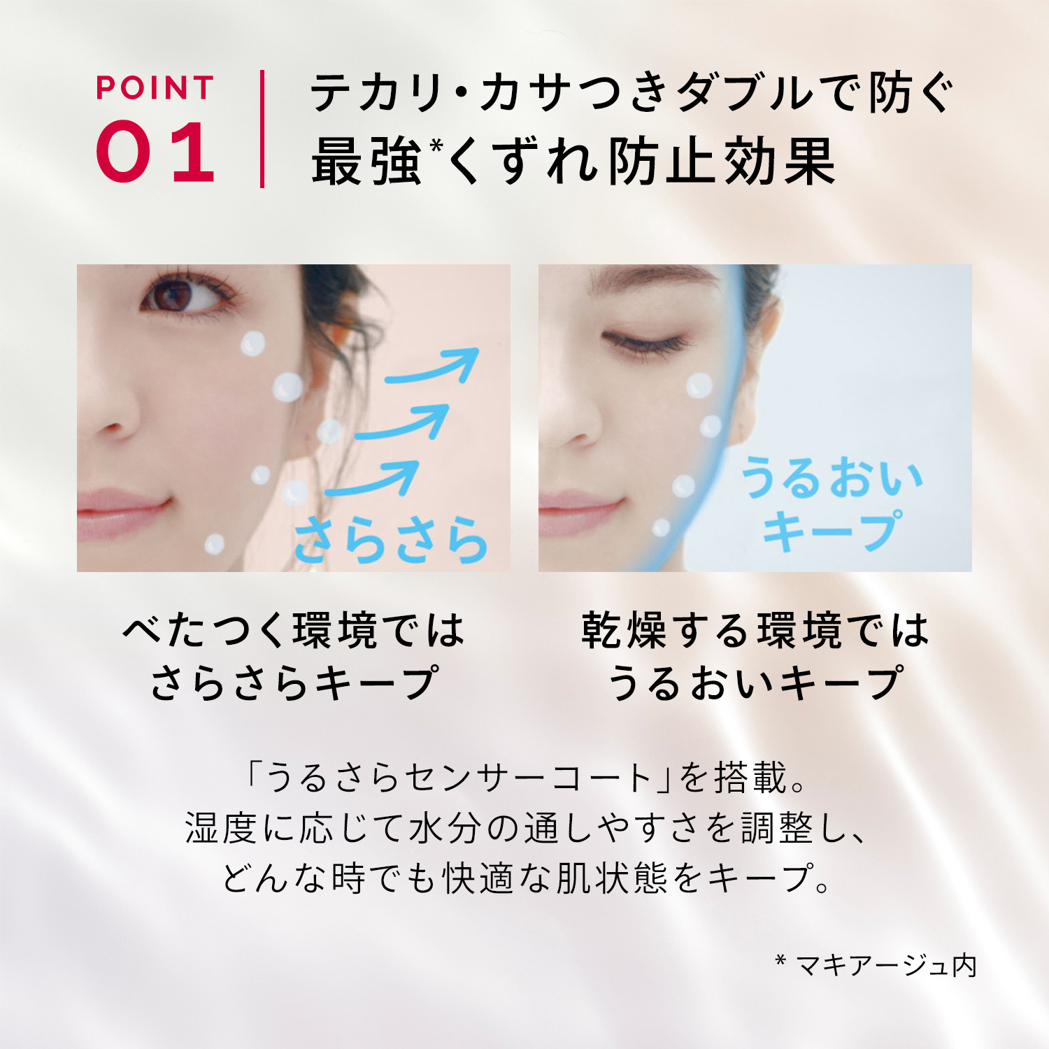 *(テカり・皮脂くずれ・毛穴の目立ち・よれ・薄れ・くすみ・粉っぽさ)のなさ(メーカー調べ。効果には個人差があります)