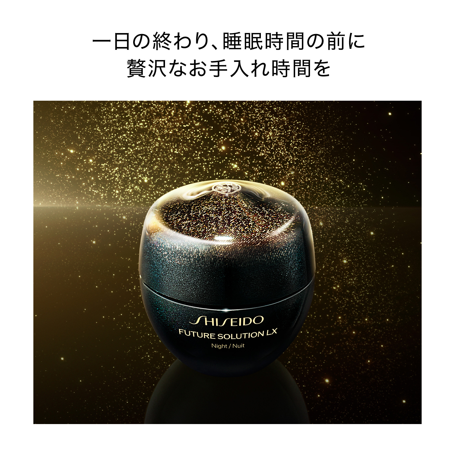 美の才能が開く。時間を美しさに変える。日本古来の植物、エンメイソウを含む新たなロンジェネビティーサイエンス*へと到達。リッチでなめらかなテクスチャーで浸透**し、夜の肌環境を整えるクリームです。