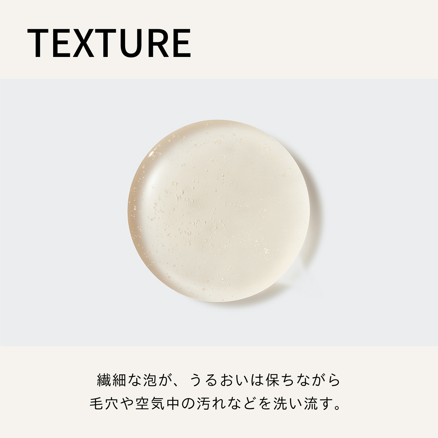 繊細な泡が、うるおいは保ちながら毛穴や空気中の汚れなどを洗い流す洗顔料