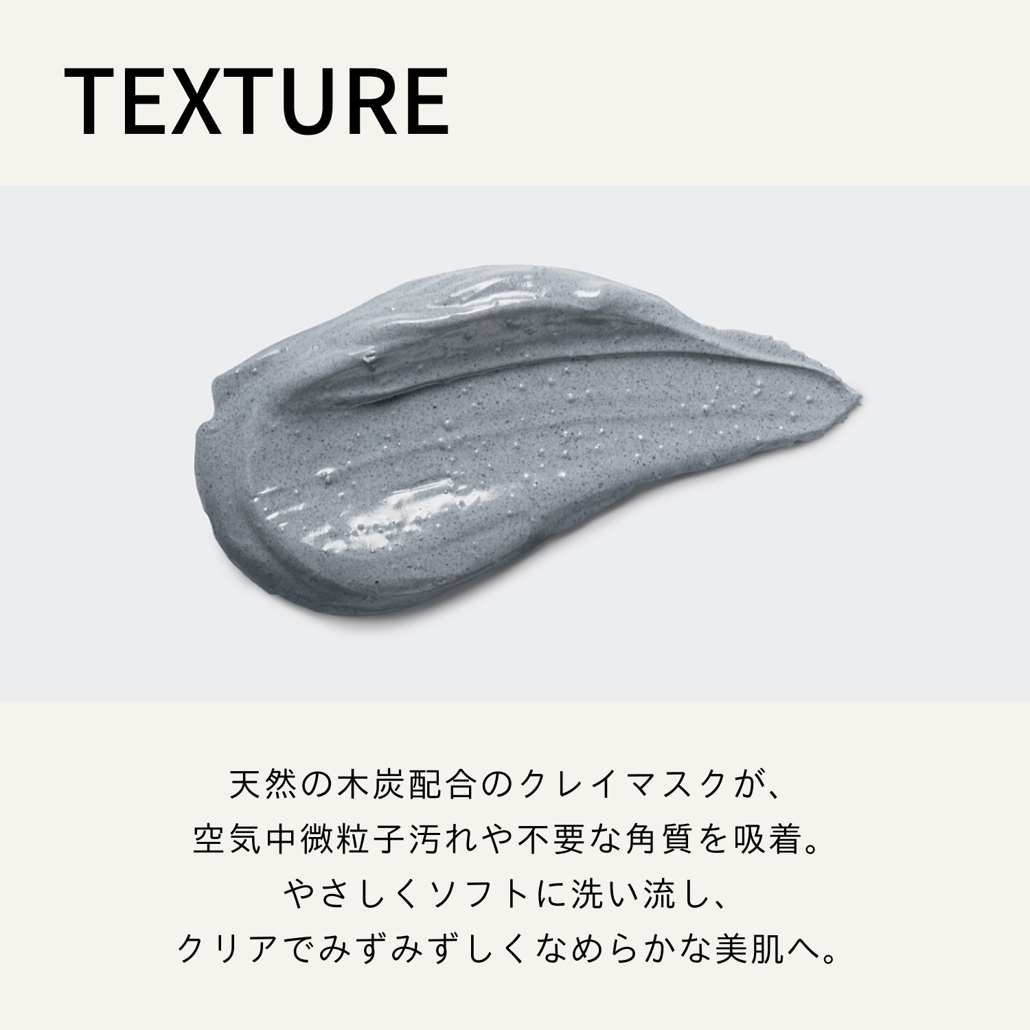 天然の木炭を配合。明るさに満ちたなめらかな素肌へ導くクレイ状マッサージマスク