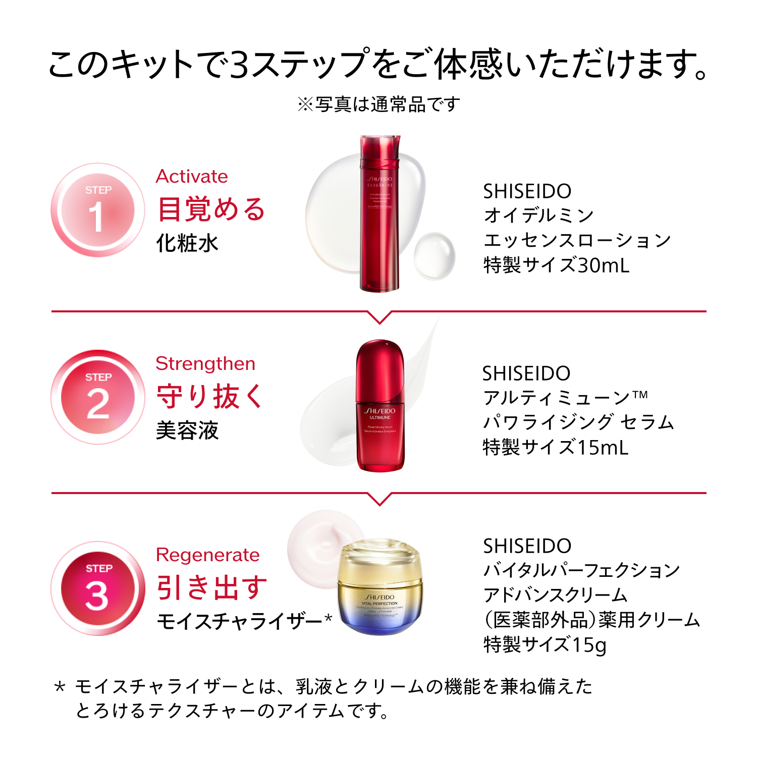 3ステップで生命感あふれるつややかな肌へ。